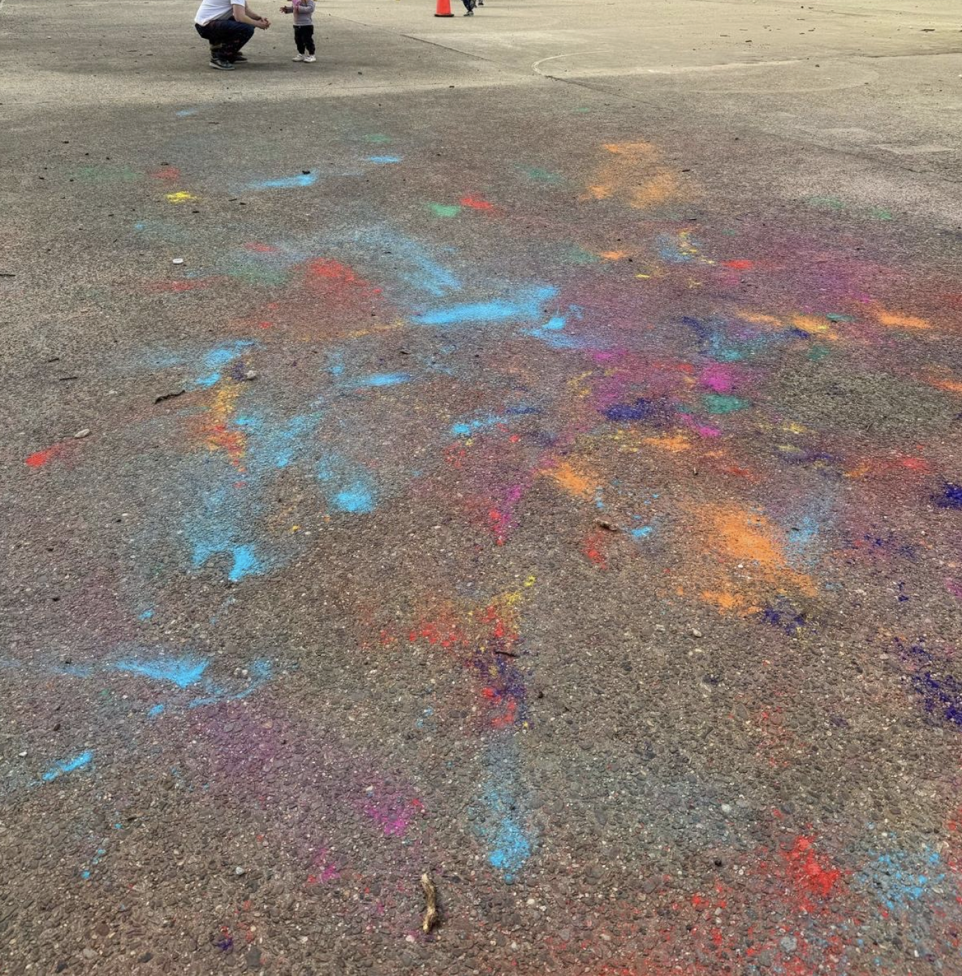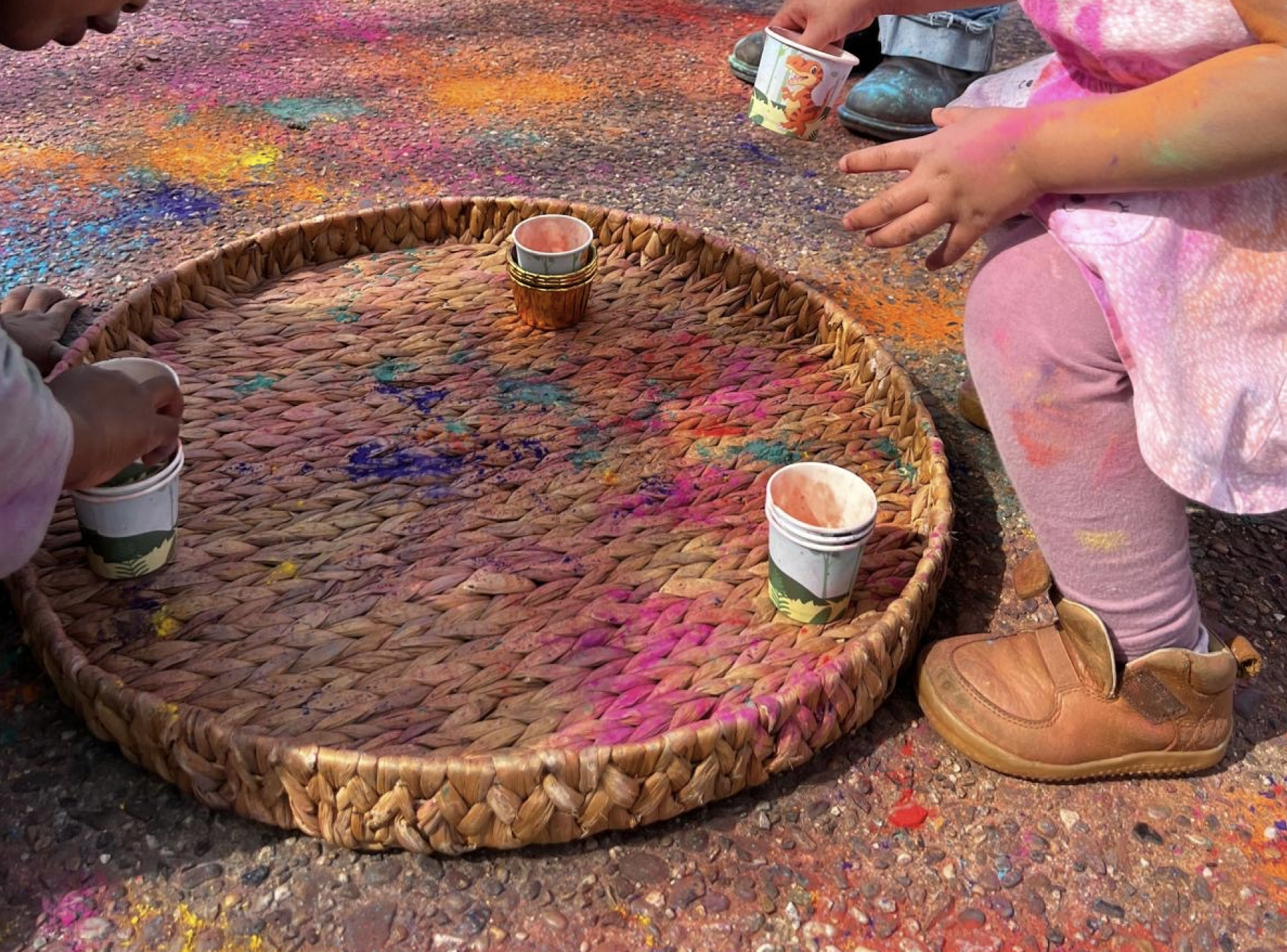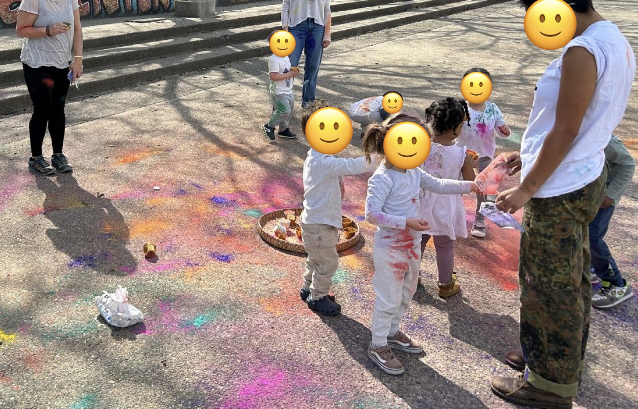 - We brought all the kids outside to a large basketball court blacktop where they could roam and run freely for the actual color throwing